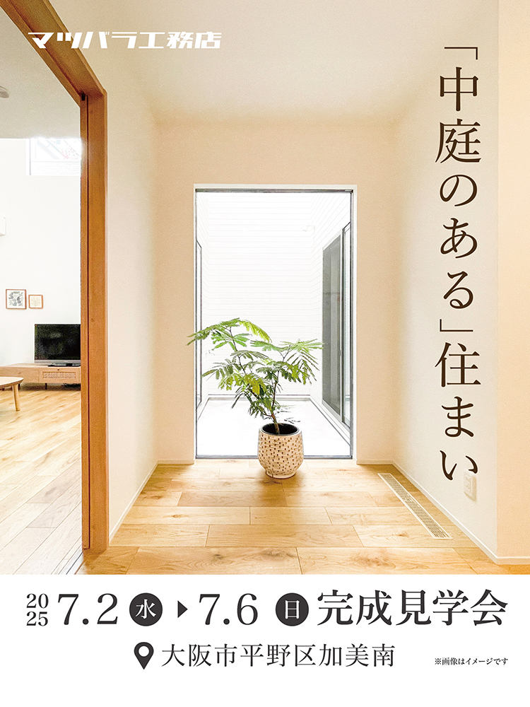 EVENT [大阪市平野区加美南★中庭のある住まい]完成見学会 開催日時 2025年7月2日(水)~7月6日(日) 10:00/12:00/15:00▶予約制 (会場:[大阪市平野区加美南★中庭のある住まい]完成見学会) 詳しくはこちら > 会場 [大阪市平野区加美南★中庭のある住まい]完成見学会 会場住所 大阪市平野区加美南※お申し込み後に、現地住所をお送りいたします 開催日時 2025年7月2日(水)~7月6日(日) 10:00/12:00/15:00▶予約制 参加費 無料 定員 各回1組 アクセスマップを確認する >> 前の記事 次の記事 一覧へ戻る