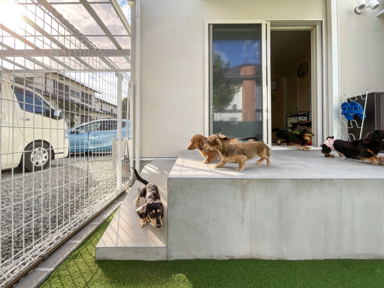 ミニチュアダックスフンドのブリーダーで11匹の愛犬のためのお部屋とドッグランが希望でした。既存の中古戸建を購入して、犬舎を増築。広いお庭があったので、整地してドッグランにしてほしいとお願いしたんです。あとはキッチン・洗面所の入れ替えですね。