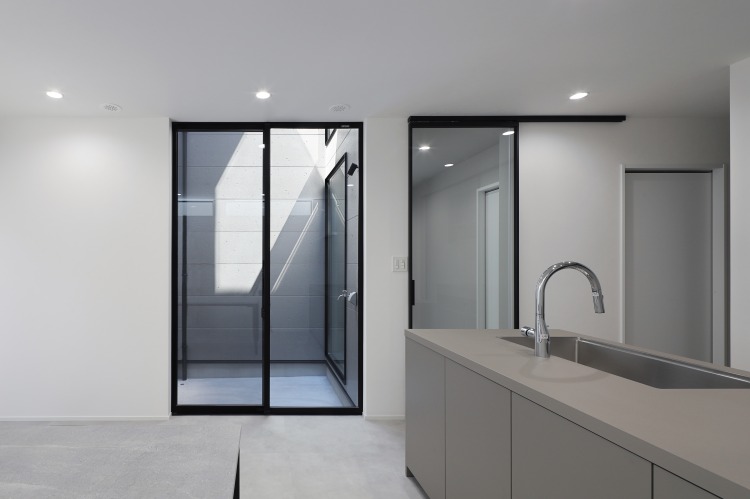 利便性のよい大阪市内のお土地に建築するため 外からの視線を感じないよう窓のない外観となっています。 しかし中に入ると、中庭と吹き抜けによって室内は光があふれています。 全館空調なのでエアコン1台の稼働で、 冷気暖気が全部屋にまわるので省エネで快適な住まいが完成しました。 【youtubeルームツアーをみる】